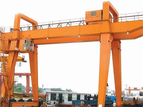 門式起重機是橋式起重機的一種變形,又叫龍門吊。主要用于室外的貨場、料場貨、散貨的裝卸作業(yè)。它的金屬結(jié)構(gòu)像門形框架,承載主梁下安裝兩條支腳,可以直接在地面的軌道上行走,主梁兩端可以具有外伸懸臂梁。門式起重機具有場地利用率高、作業(yè)范圍大、適應(yīng)面廣、通用性強等特點,在港口貨場得到廣泛使用。
